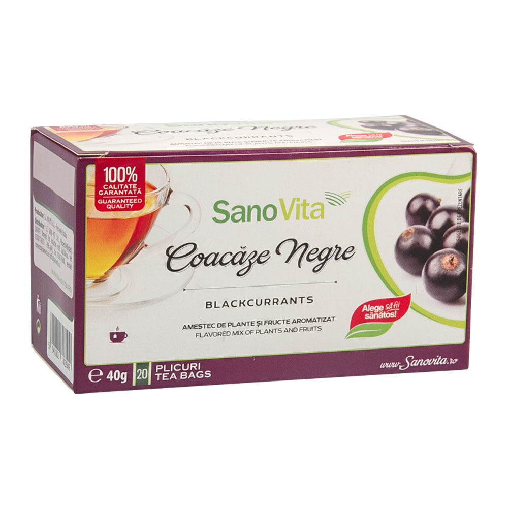 Coacazele negre prin continutul ridicat de taninuri, rutozide, vitamina C, saruri de potasiu, flavone, ulei volatil confera ceaiului proprietati diuretice, de stimulare a circulatiei limfatice si venoase, antiinflamatorii (prin continutul in flavone), stimuleaza eliminarea acidului uric din sange, are actiune antihipertensiva, efecte benefice antireumatice, stimuleaza formarea globulelor rosii. Are un gust placut, usor acrisor, racoritor.