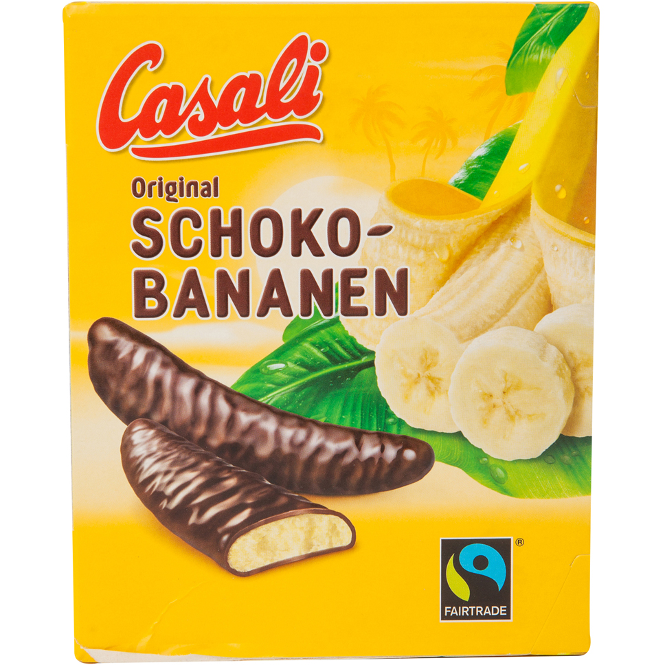 Ingrediente: Zahar, sirop glucoza, apa, masa de cacao, pulpa de banane 6%, unt de cacao, agent de umezire (sorbitol), agenti de gelifiere (agar-agar), gelatina, acidifiant (acid citric), emulgator (lecitina din soia), arome naturale, coloranti (curcuma).