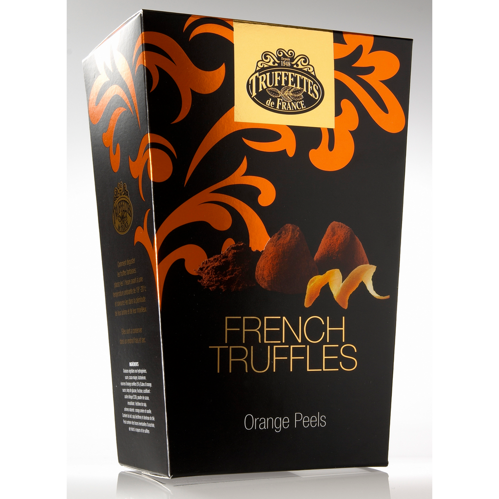 Trufe de ciocolata fina, dulce amaruie, obtinute dupa o reteta clasica si secreta frantuzeasca. Gustul amarui al ciocolatei este intregit si aroma delicata a cojilor de portocale. Sunt perfecte pentru o clipa de rasfat in orice moment al zilei sau un cadou oferit cuiva drag.