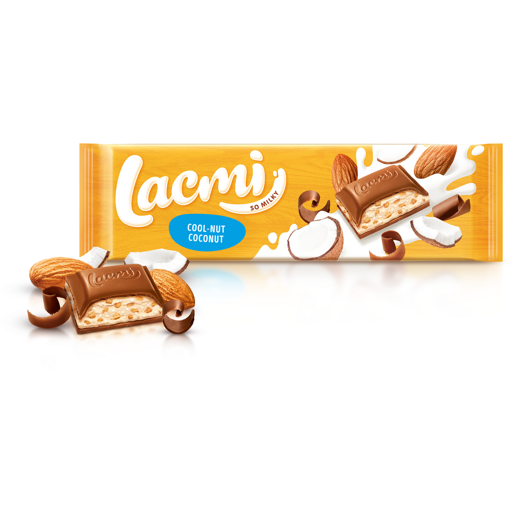 Lacmi Cool crema de ciocolata cu bucati de cocos si migdale, 280 G.