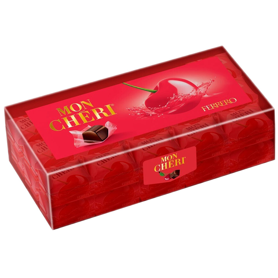 Ingrediente: Ciocolata 49% (zahar, masa de cacao, unt de cacao, unt de cacao, emulgator: lecitina (SOIA), vanilina), zahar, cireasa intreaga (18%), lichior 13% (sirop de glucoza, apa, alcool, zahar, aroma), unt de cacao. Substanta uscata de cacao min. 43% in ciocolata.
