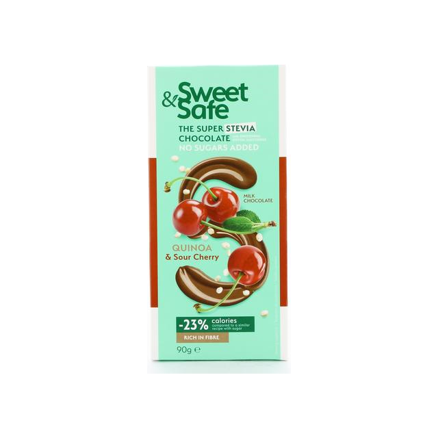 Ingrediente: indulcitori (eritritol, glicozide din steviol), lapte praf degresat, unt de cacao, masa de cacao, quinoa crisp 8%, inulina, grasime anhidra din lapte, visine liofilizate (2%), emulgator (lecitina din soia), aroma naturala de visine, vanilina.