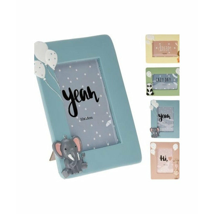 Rama este din ceramica cu un spatiu pentru fotografie de 10 x 15 cm. Aspectul frumos decorat cu figura unui animal si baloane va incanta atat copiii, cat si adultii.
