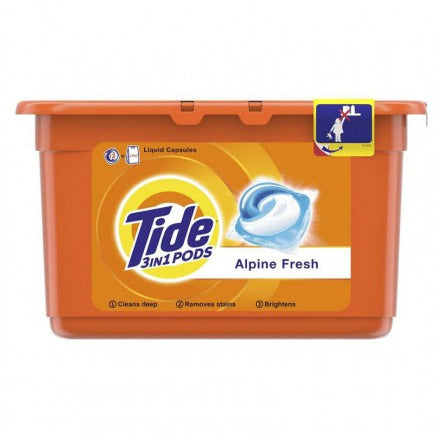 Capsulele Tide 3in1 indeparteaza petele si ofera stralucire hainelor. Tide 3in1 PODs Alpine Fresh detergent capsule, 12 Spalari. Capsulele Tide 3in1 contin trei componente care curata hainele in profunzime, indeparteaza petele si ofera stralucire hainelor. Pentru o experienta de spalare a hainelor simpla, dar eficienta, capsulele Tide 3in1 sunt solutia all-in-one pe care o cauti.