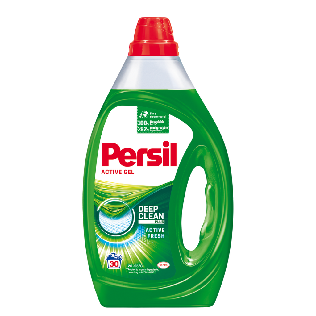 Persil Active Gel este un detergent pe care te poti baza pentru a oferi o curatare igienica si rezultate perfecte pentru rufele tale. Indeparteaza chiar si cele mai dificile pete fara a afecta hainele tale. Tehnologia sa integrata Deep Clean Plus garanteaza performante eficiente de curatare, patrunzand adanc in fibre pentru indepartarea petelor, in timp ce Active Fresh Effect pastreaza hainele ca si cum ar fi fost proaspat spalate. Toate acestea oferind in acelasi timp ingrijirea fibrelor si pastrand stralucirea acestora. Persil Active Gel este eficient chiar si in cazul spalarlor scazute incepand cu temperaturi (20°C).