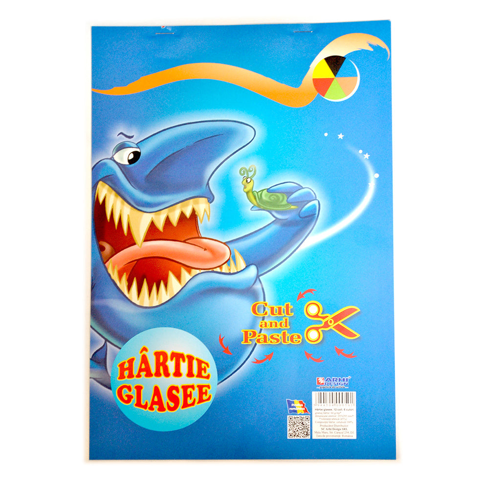 Hartie glasse, in format A4, 12 coli, in 6 culori, hartie interior 60 g/mp.