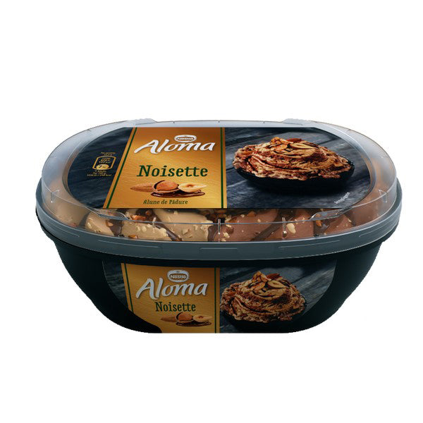 Inghetata cu arome de napolitana si alune, umplutura de alune, bucatele de alune si migdale caramelizate.
