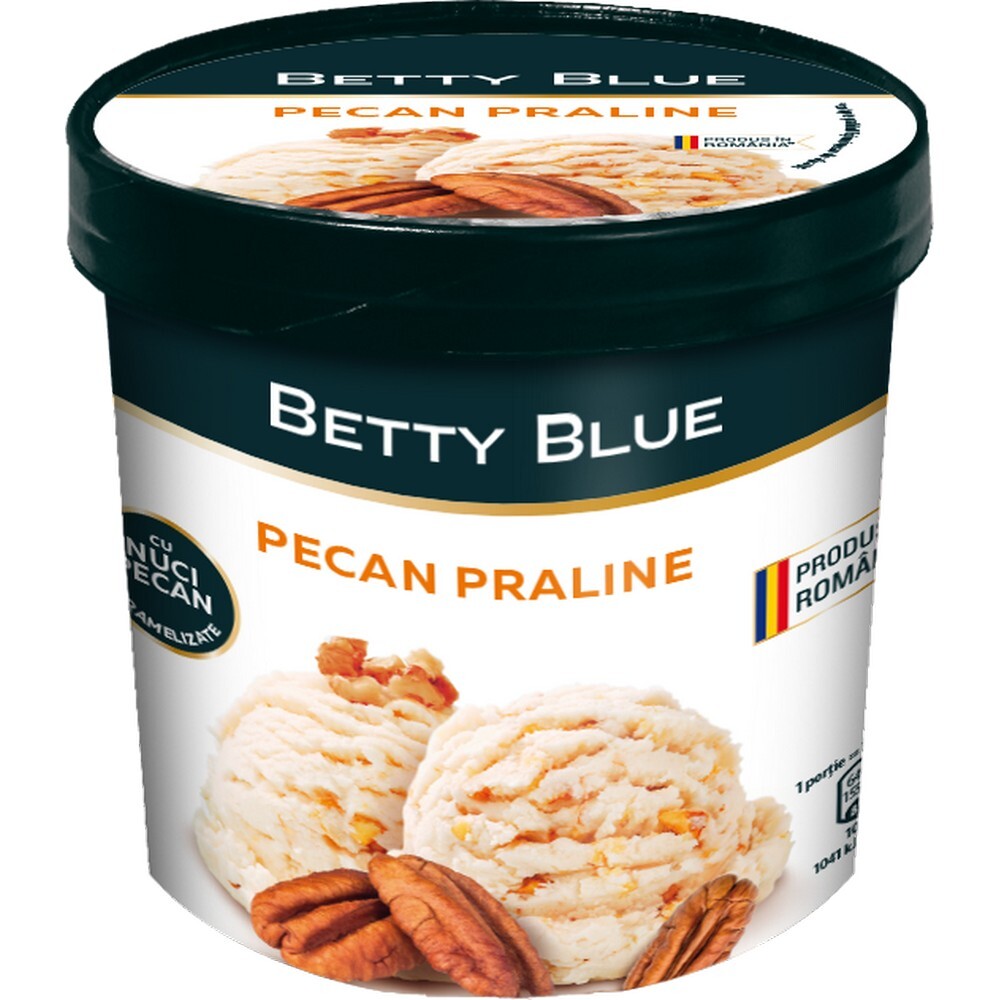 Inghetata cu aroma de vanilie, bucatele de nuci pecan caramelizate (12%) si caramel cu unt sarat (10%)