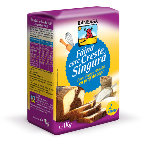 Ingrediente: Faina de grau alba obtinuta prin macinarea graului, praf de copt.