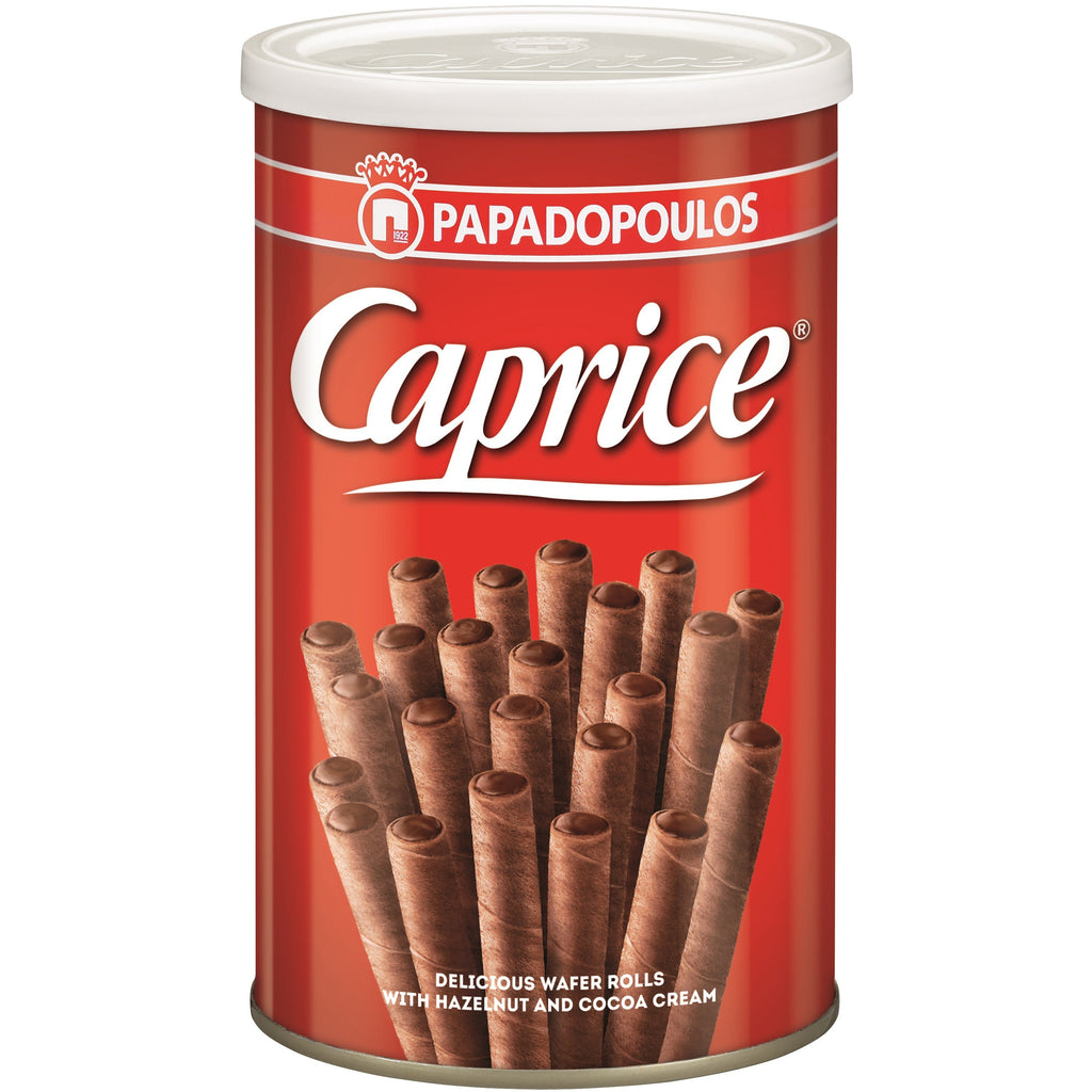 Caprice reprezinta o combinatie irezistibila de rulouri de napolitane crocante umplute cu pasta de praline si cacao, ce ii confera acestui produs un gust rafinat si deosebit.