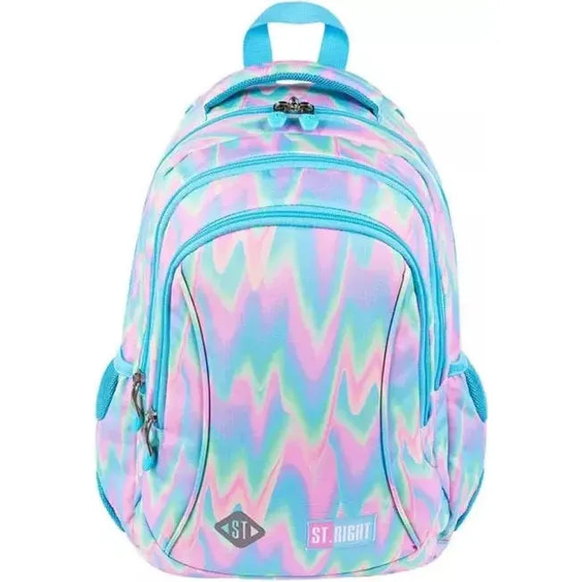 Ghiozdan pentru clasele I-IV, 3 compartimente, Majewski, Gama St. Right, Colectia Bubble Gum, un ghiozdan modern si confortabil, de foarte buna calitate, finisat si decorat cu tehnologii avansate. Ghiozdanul este confectionat din materiale impermeabile, rezistente la uzura si inghet. Ghiozdanul este deosebit de incapator, cu o compartimentare excelenta, avand spatii pentru carti, caiete, accesorii si rechizite, asigurand astfel o foarte buna organizare. Prevazut cu un compartiment principal ce se inchide cu doua fermoare si doua compartimente frontale ce se inchid cu fermoar, ghiozdanul este deosebit de spatios si practic. Compartimentul principal al ghiozdanului este dotat cu un buzunar special pentru a pastra diverse articole de mici dimensiuni. Unul din compartimentele frontale ale ghiozdanului este dotat cu mai multe separatoare interioare (destinate articolelor precum chei, bani, memory-stick-uri, accesorii telefon, instrumente de scris sau alte obiecte importante de mici dimensiuni), precum si cu un breloc detasabil pentru cheie. Ghiozdanul este prevazut cu doua buzunare laterale cu elastic, ideale pentru a pastra recipientul cu apa. Ghiozdanul este dotat cu elemente reflectorizante pe partea din fata, pe laterale si pe bretele. Ghiozdanul este prevazut cu un maner buretat pentru a putea fi purtat si in mana. Spatele si bretelele sunt intarite si buretate cu un burete gros, oferindu-le fermitate si avand rolul de a proteja umerii si spatele. Spatele ghiozdanului este buretat ergonomic, dotat cu o zona de contact cu plasa, pentru o buna circulatie a aerului. Bretelele ghiozdanului sunt ajustabile, pentru ca acesta sa poata fi aranjat perfect pe spate. Fermoarele au zona de prindere cauciucata si profilata, pentru prindere usoara. Cheitele fermoarului compartimentului principal permit utilizarea unui lacat sau a unei criptari TSA. Baza ghiozdanului are zone de contact cauciucate pentru protejare la umezeala. Dimensiunile ghiozdanului sunt urmatoarele: 40x26x15 cm.