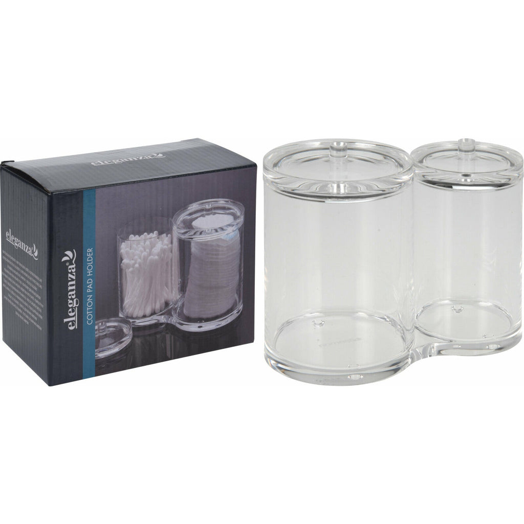 Un set de doua recipiente elegante. Recipiente din acril transparent cu capace. Perfect ca organizatoare de baie. Perfecte pentru depozitarea tampoanelor de bumbac si a discurilor. De asemenea, puteti depozita in ele pensule de machiaj si lacuri de unghii.