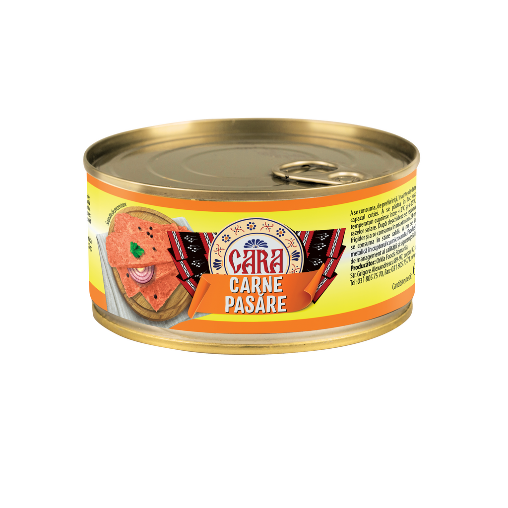 Ingrediente: carne pasare 60%(de origine din UE), apa, faina de grau, amidon modificat din porumb, proteina vegetala din soia, sare, proteina animala de pasare, sare, agent de ingrosare (caragenan ), ceapa, stabilizatori (difosfati, trifosfati), condimente, zahar, aroma, fibre vegetale, antioxidanti (acid ascorbic,), conservant (nitrit de sodiu).