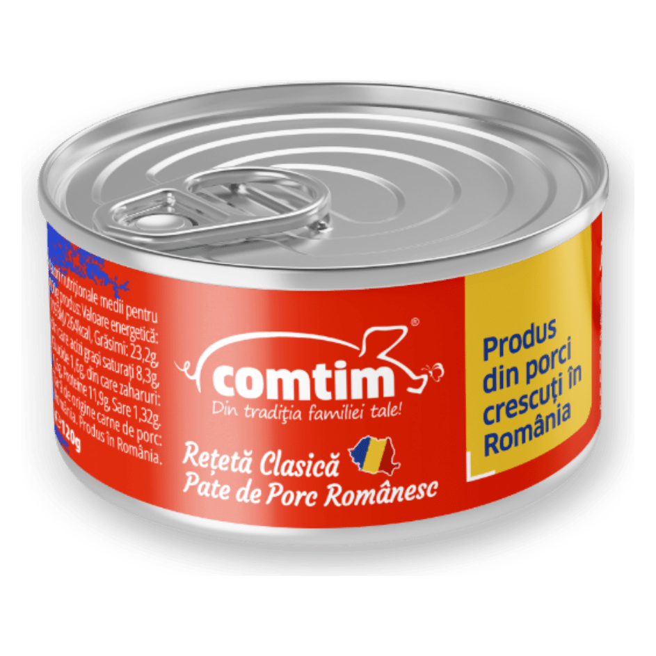 Ingrediente: 30% ficat de porc, slanina, supa de la fierbere, carne de porc, amidon din grau, sare, legume si condimente(cepa, telina, piper, rosii pudra, enibahar, coriandru, ghimbir, nuscoara, cardamon), zahar, proteina animala, smantana (contine lapte), extract de drojdie, extract de condimente, conservant:nitrit de sodiu.