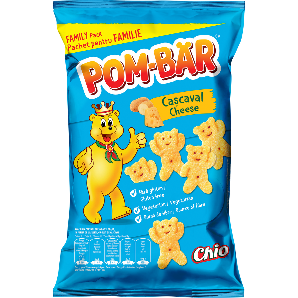 Snack din cartofi, expandat si prajit, in forma de ursuleti, cu gust de cascaval 80g