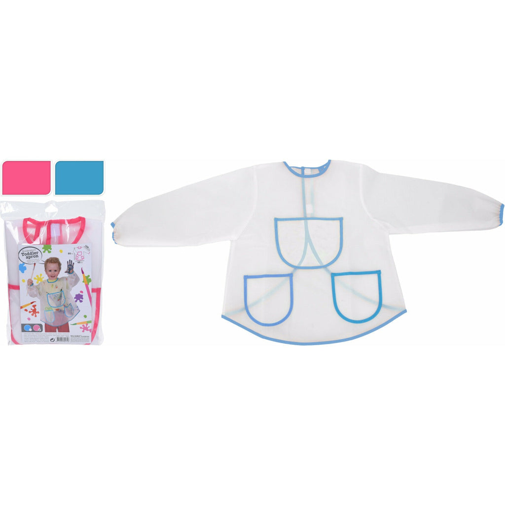 Sort din plastic pentru copii cu margine colorata, care va proteja hainele micutilor tai in timpul activitatilor artistice de acasa, gradinita si scoala. Banda velcro, datorita caruia poate fi usor inchis si desfacut. Echipat in fata cu trei buzunare practice pentru depozitarea comoda a rechizitelor de arta precum pensule, vopsele, foarfece etc. Buzunar mediu cu o poza vesela.