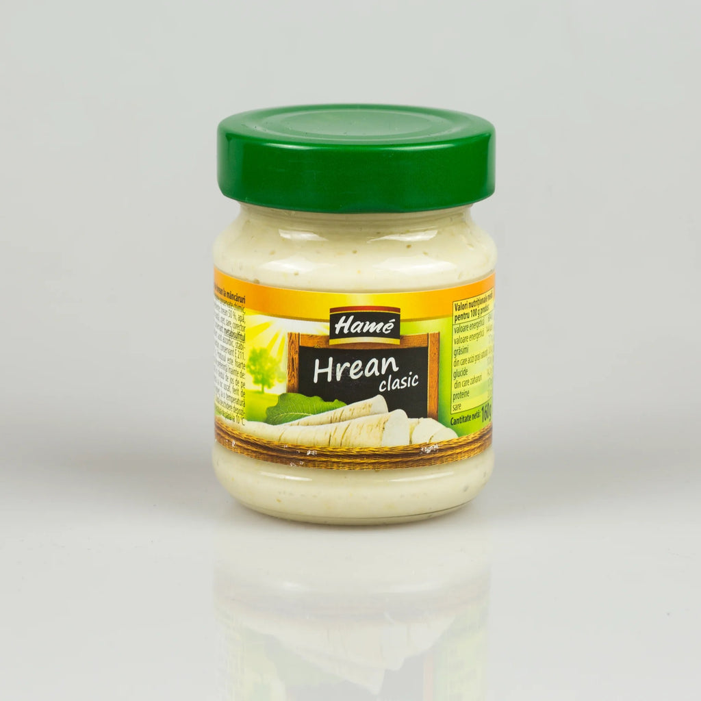 Hrean - garnitura de hrean la mancaruri. Legume prelucrate. Legume conservate chimic, de un singur fel. Produsul este foarte picant.