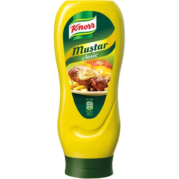 Knorr Mustar Clasic are gust fin si aroma intensa de mustar. Nelipsit de la mesele de sarbatoare si de la gratare, desavarseste carnea si e o baza perfecta pentru sosuri si dressinguri.