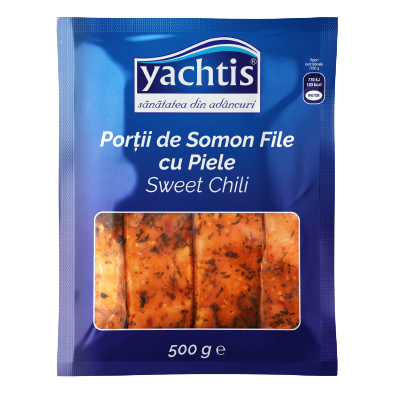 Yachtis portii de somon file cu piele sweet chili, 500 g.