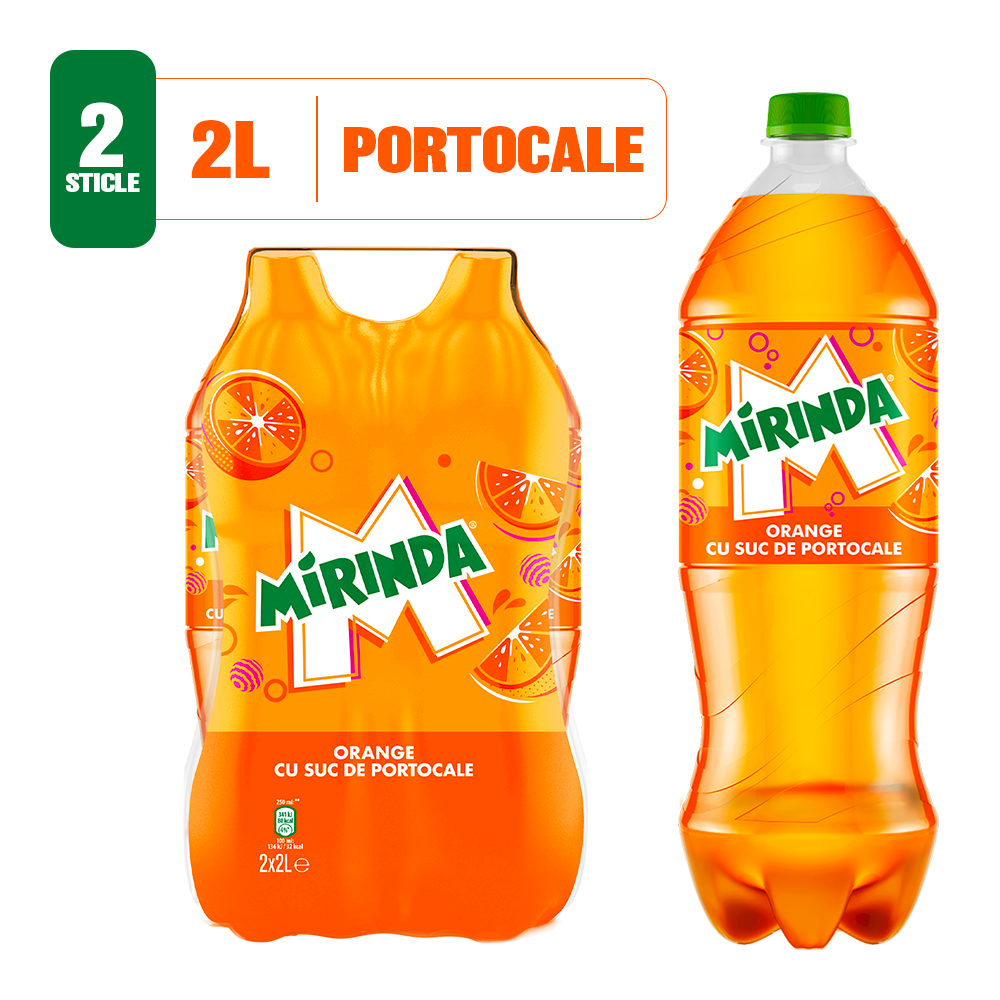 Mirinda Portocale, bautura cu suc de portocale pet, 2x2L SGR