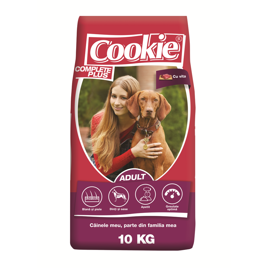 Cookie Complete Plus este o hrana uscata completa si echilibrata ce ajuta cainii adulti cu activitate moderata si normala sa se mentina zilnic in forma. Gama propune un plus de proteine si 4 variante autentice de gust pentru extra apetit si diversitate.Blana si piele- Formula imbunatatita cu zinc si vitamine din complexul B ajuta la mentinerea sanatatii blanii si a pielii.