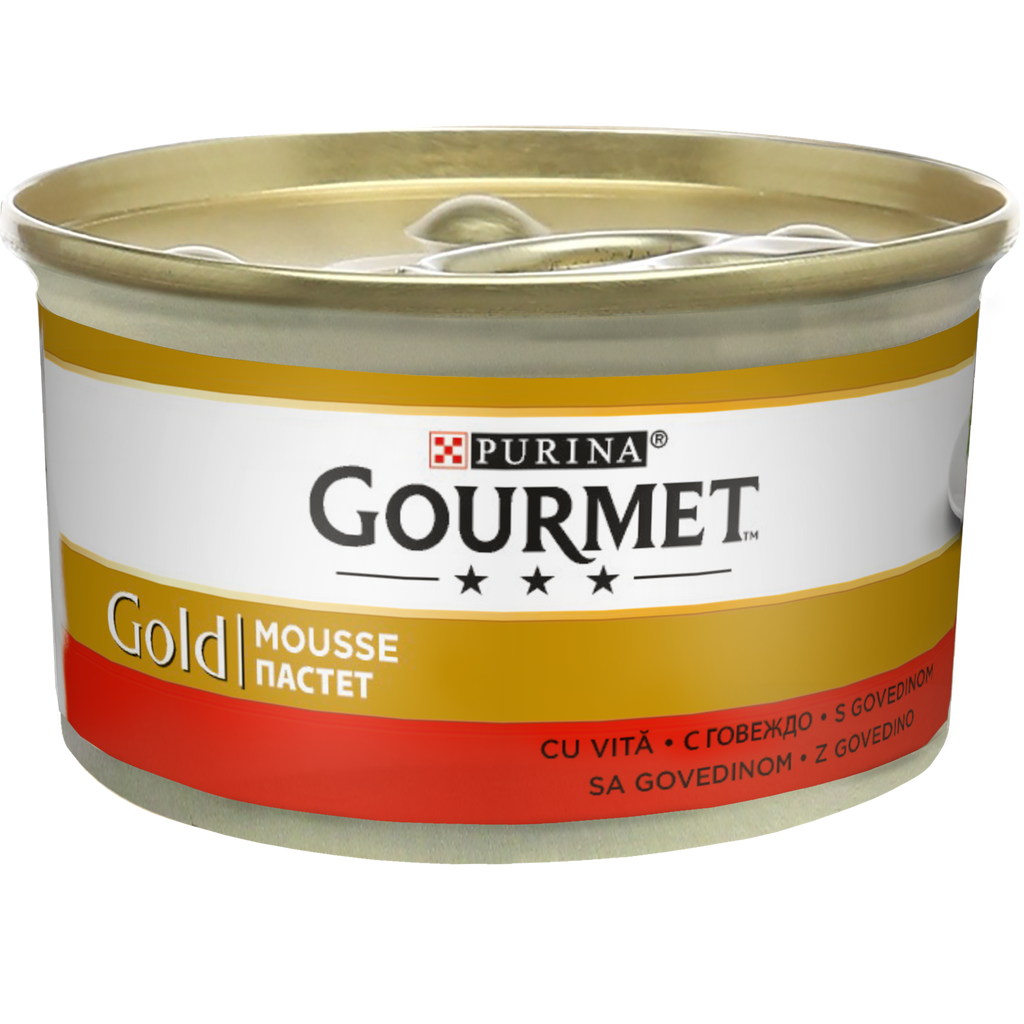 Nu vrei ca pisica ta sa se plictiseasca de mancarea ei si vrei intotdeauna sa alegi diferite tipuri de hrana pe care sa le adore. De aceea, GOURMET Gold a creat Mousse, o reteta delicioasa pentru a-i rasfata gustul sofisticat cu o experienta culinara unica. Mousse-uri delicate cu carne de vita, pui, somon si alte arome rafinate, pregatite cu atentie pentru a-i oferi pisicii tale placerea unei senzatii delicate si fine.
