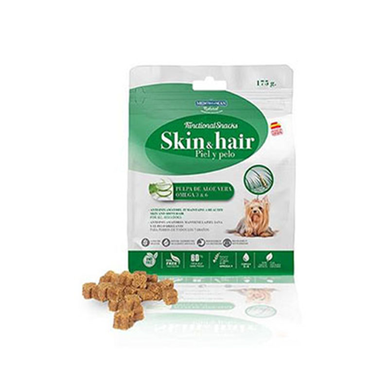 Recompense pentru caini adulti sanatosi, de toate taliile, cu efect benefic asupra pielii si blanii.