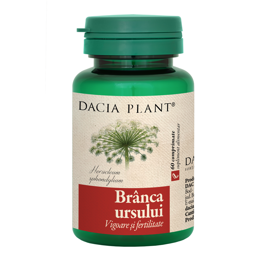 Branca Ursului comprimate este un produs vitalizant, virilizant si afrodisiac, recomandat pentru sterilitate, impotenta, cresterea vitalitatii organismului precum si pentru normalizarea activitatii secretorii a glandelor sexuale atat la barbati cat si la femei.