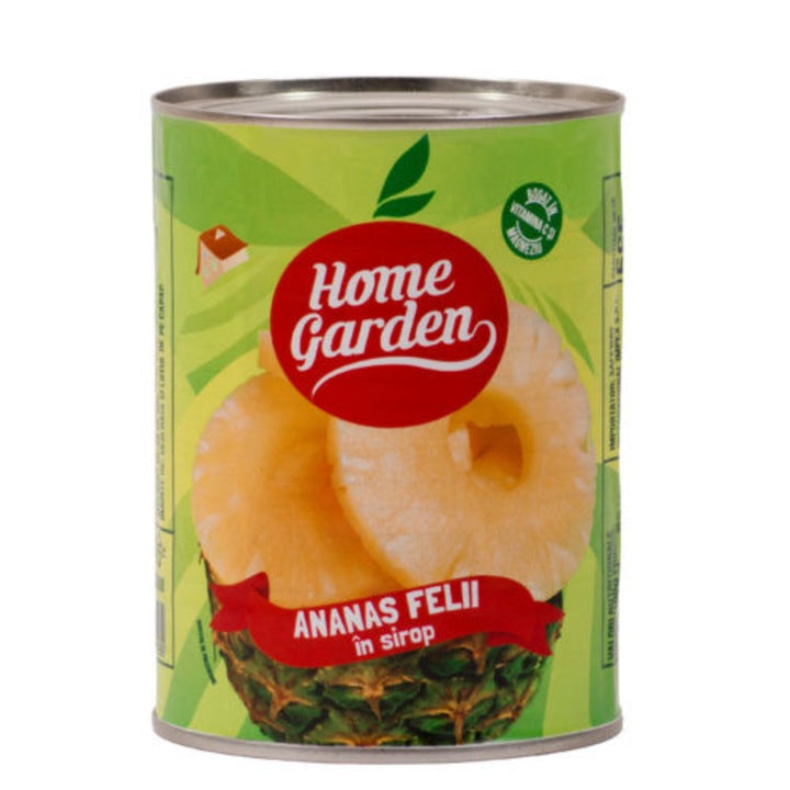 Ingrediente: ananas 60%, sirop (apa, zahar 14-16%) 47%.