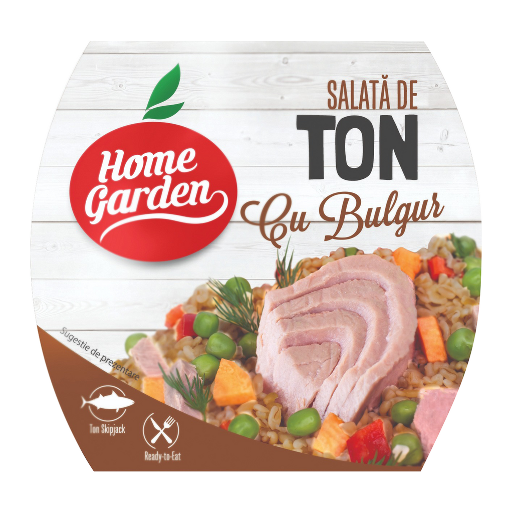 Ingrediente : Legume in proportii variabile ( ardei rosu, mazare verde, morcovi), bulgur din grau dur (apa, bulgur) 27%, ton dungat maruntit [Euthynus (Katsuwonus pelamis)]* 24%, ulei de rapita, sare, condimente, ierburi aromatice, zahar, extract de condimente.