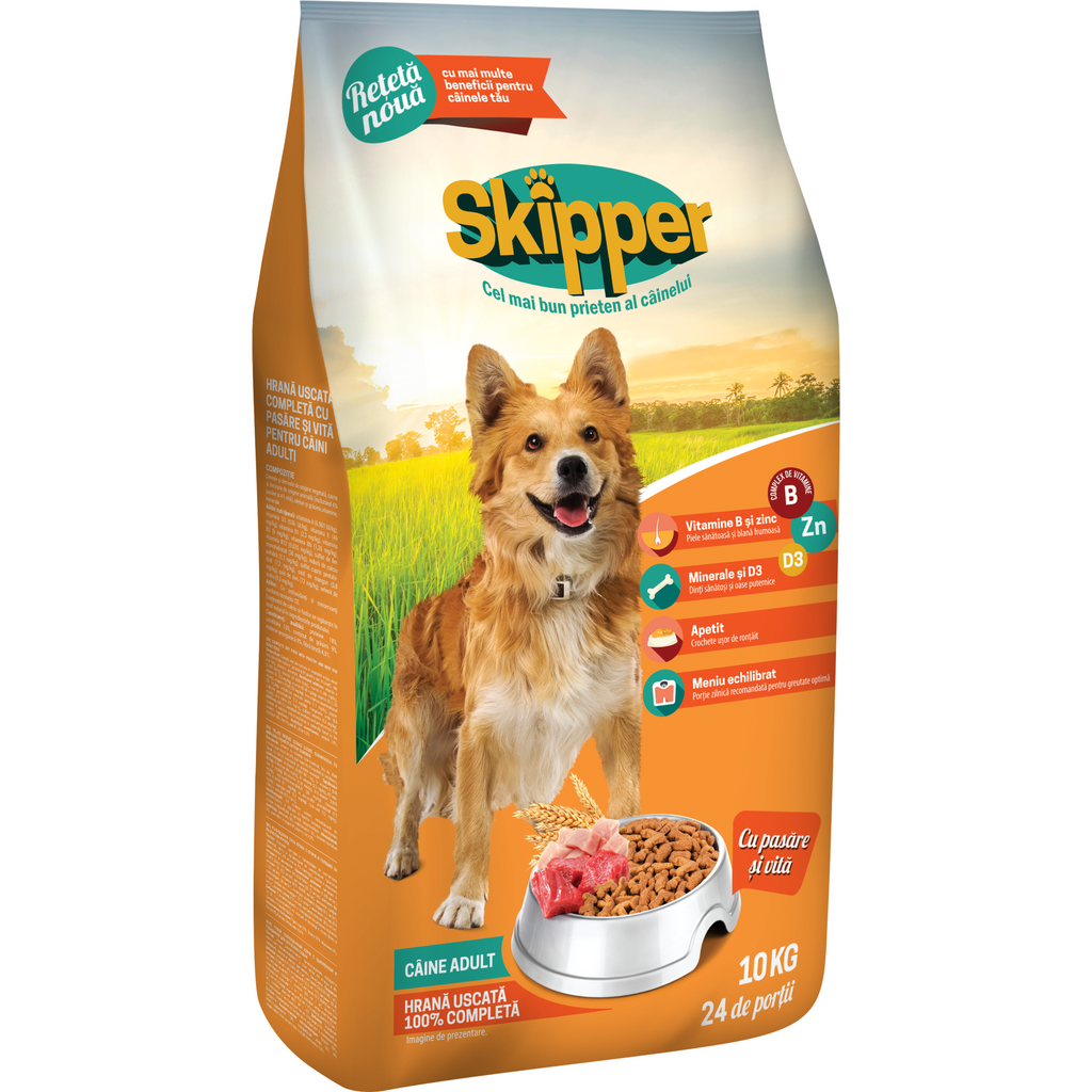 Hrana uscata pentru caini Skipper pasare si vita, 10Kg.