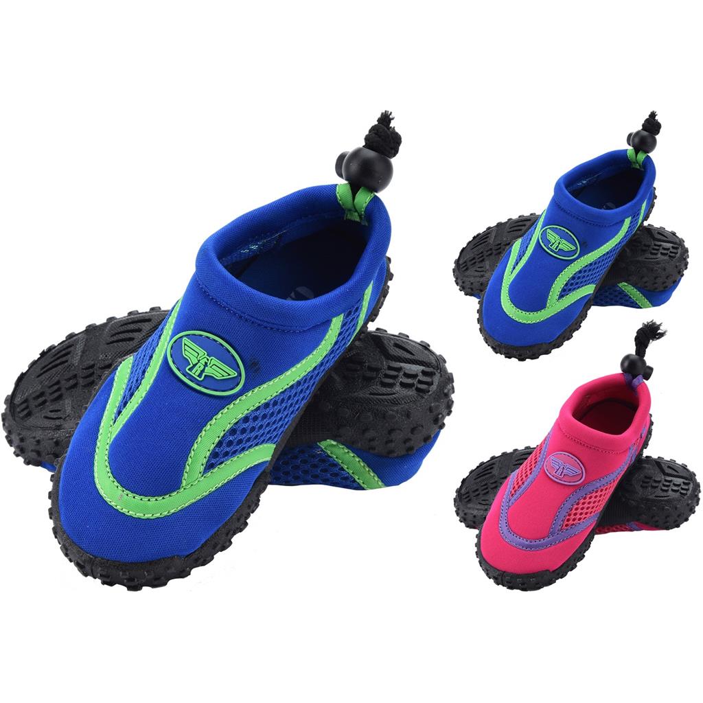 Acest pantof de apa pentru copii este confectionat din neopren si plasa in partea de sus. In plus, pantoful are o talpa TPR robusta cu anti-alunecare si un snur la indemana cu inchidere prin opritor in spatele calcaiului.