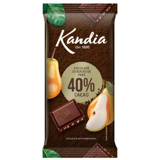 Kandia Tableta ciocolata amaruie 40% Pear, 80g.