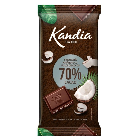 Kandia Tableta ciocolata amaruie 70% Coconut, 80g.