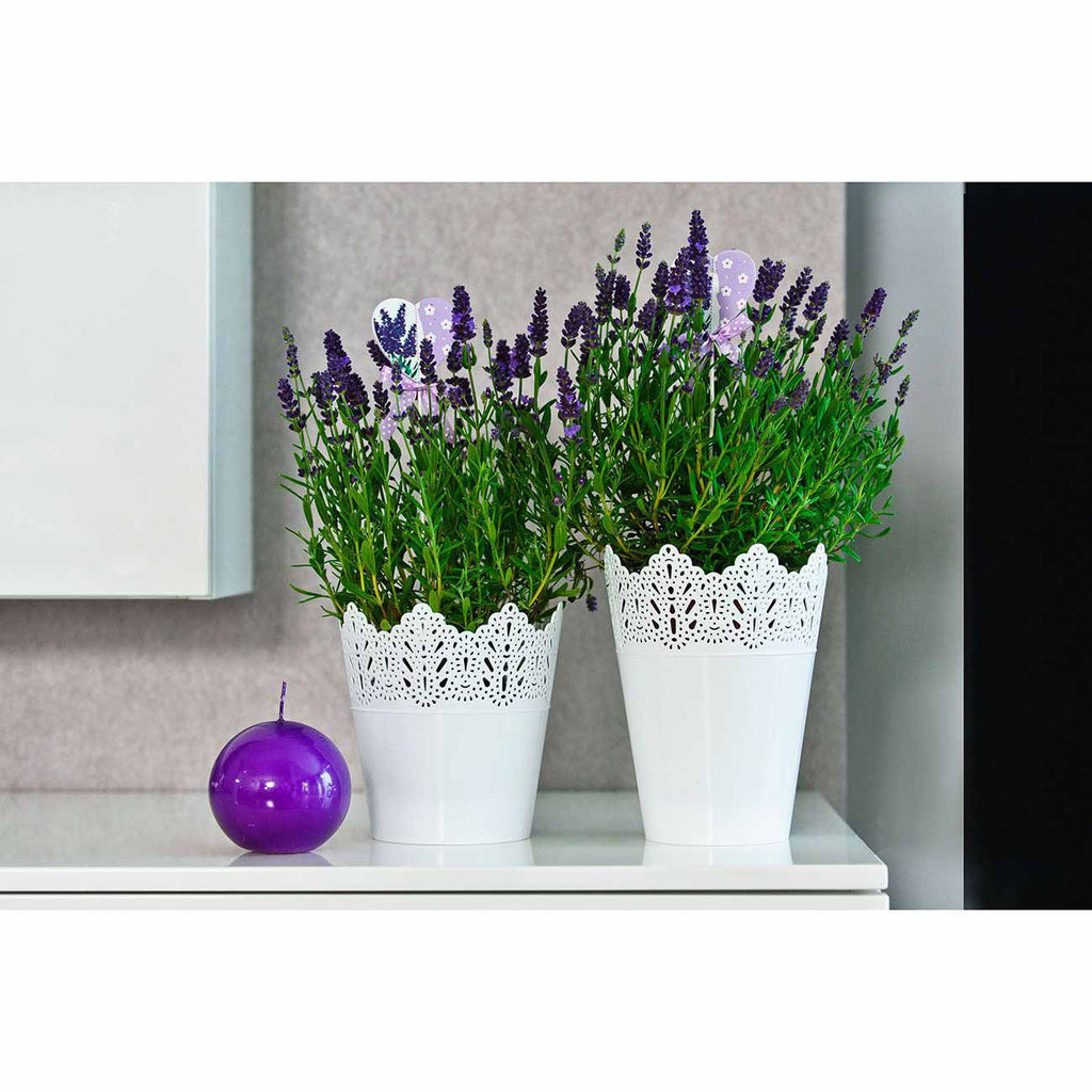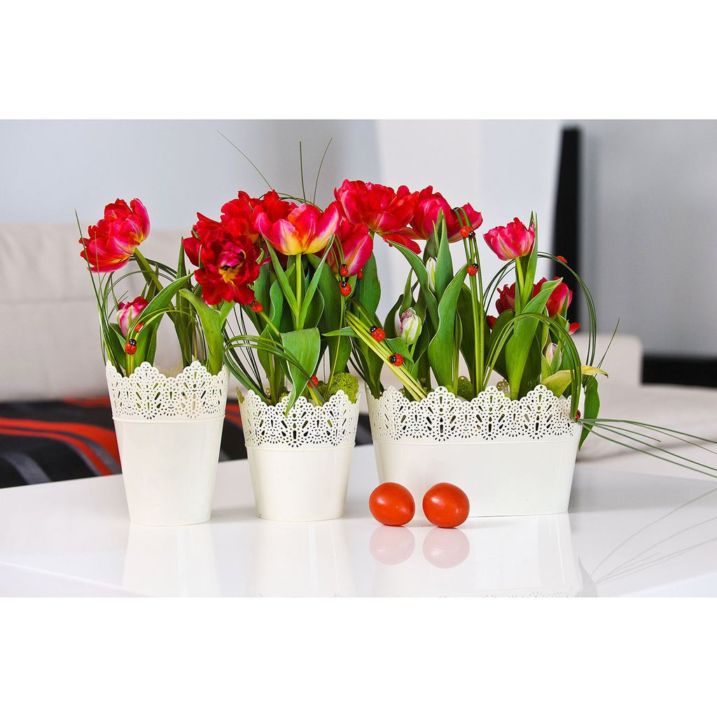 Koronka ghiveci dantelat din plastic alb, 12 cm.