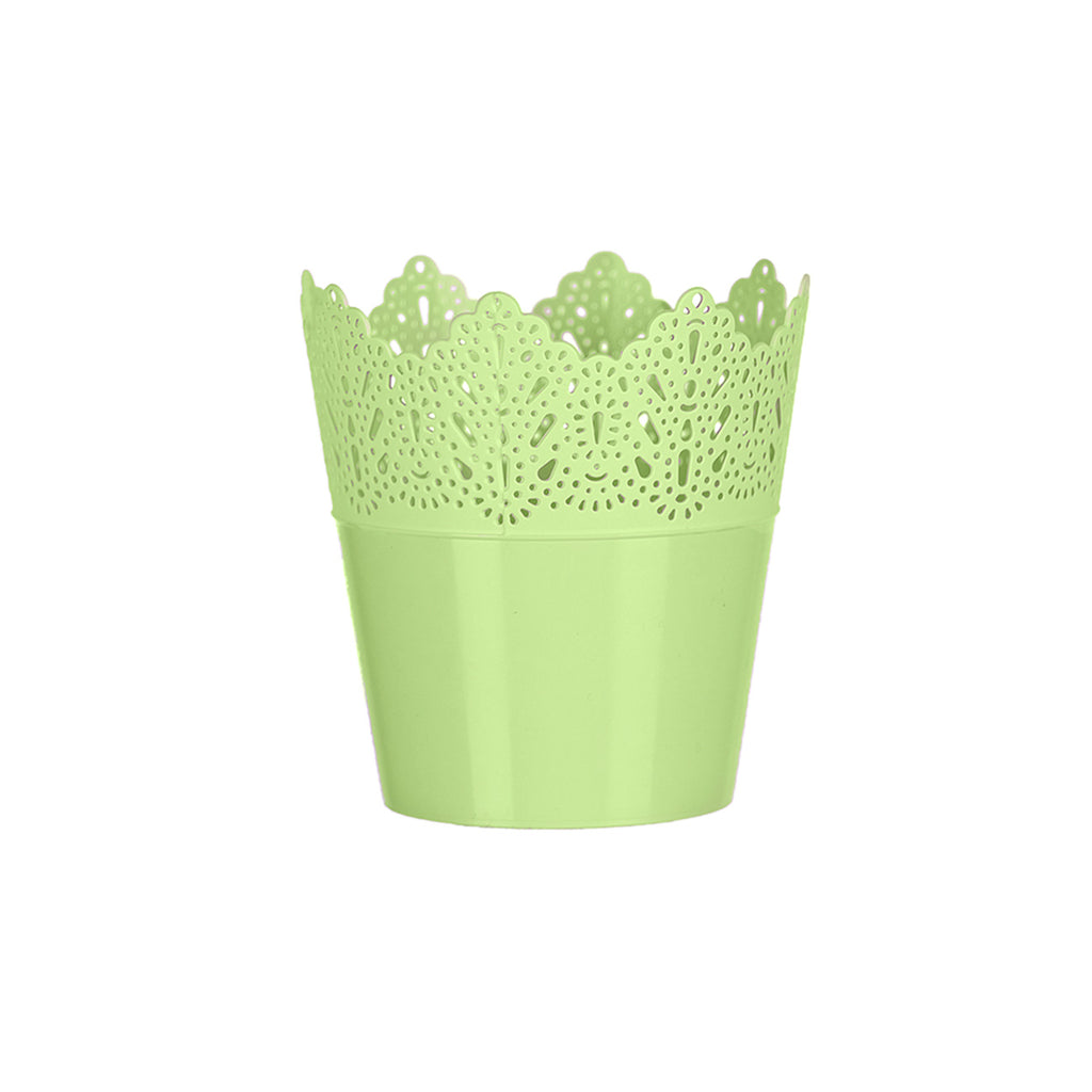 Koronka ghiveci dantelat din plastic verde, 16.5 cm.