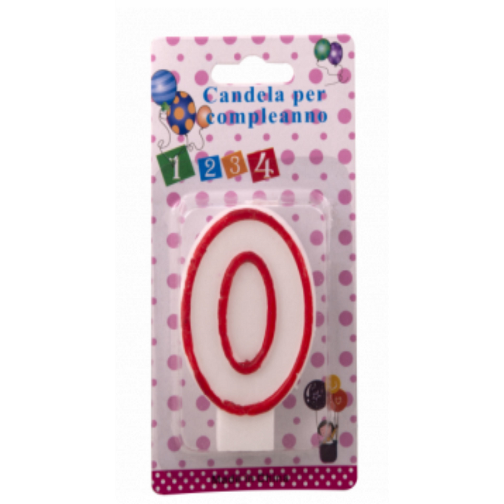 Lumanare aniversare, cifra 0, din parafina, inaltime 7 cm, rosu/albastru, 1 bucata pe blister.