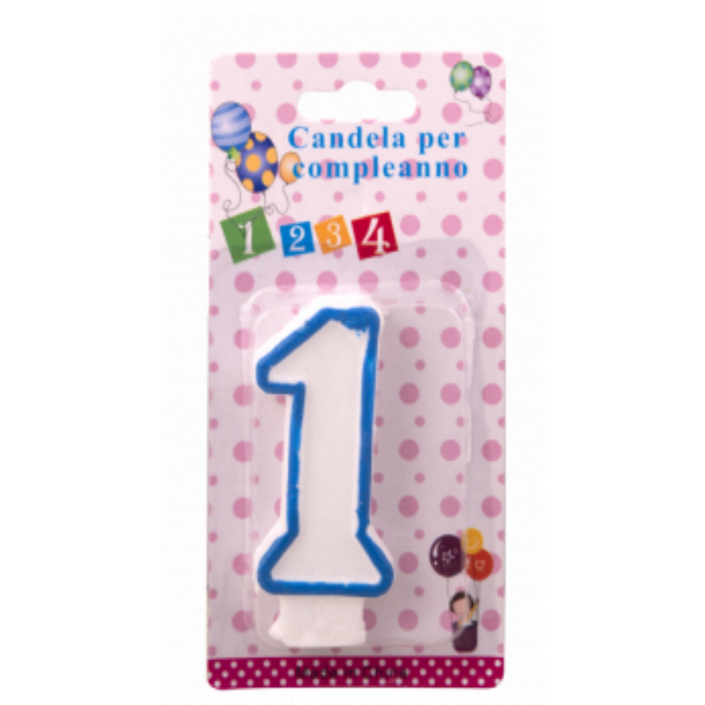 Lumanare aniversare, cifra 1, din parafina, inaltime 7 cm, rosu/albastru, 1 bucata pe blister.