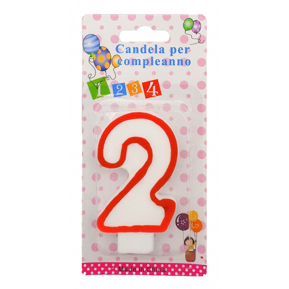 Lumanare aniversare, cifra 2, din parafina, inaltime 7 cm, rosu/albastru, 1 bucata pe blister.