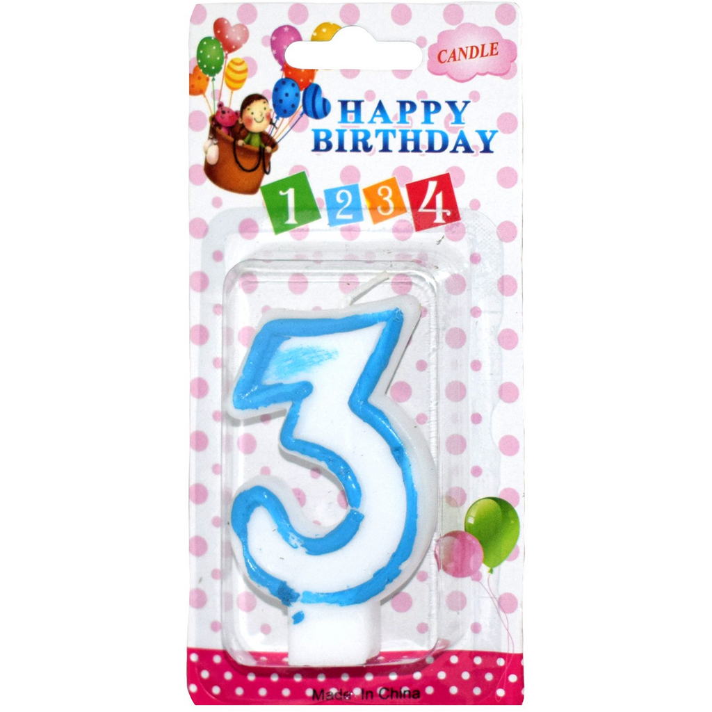 Lumanare aniversare, cifra 3, din parafina, inaltime 7 cm, rosu/albastru, 1 bucata pe blister.