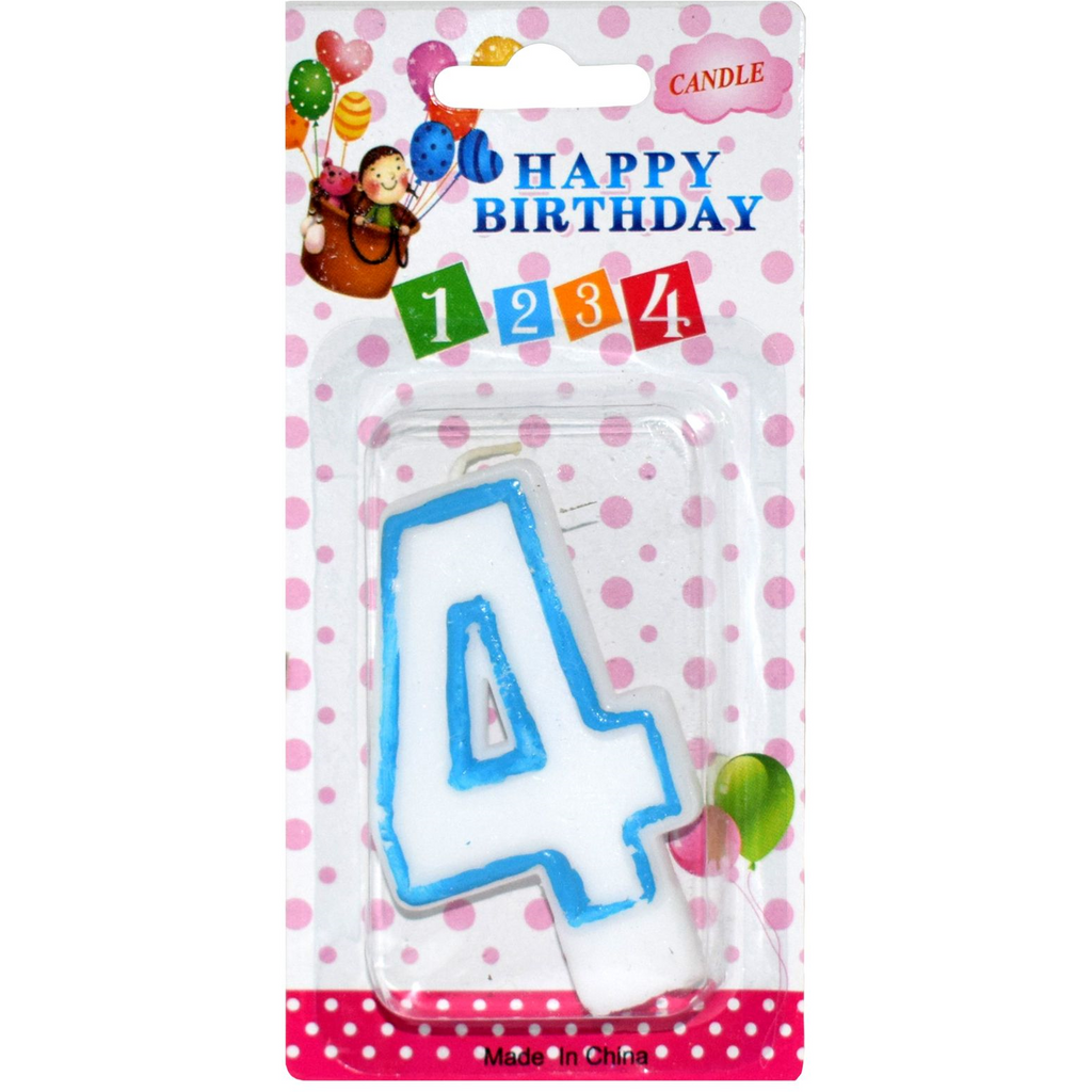 Lumanare aniversare, cifra 4, din parafina, inaltime 7 cm, rosu/albastru, 1 bucata pe blister.