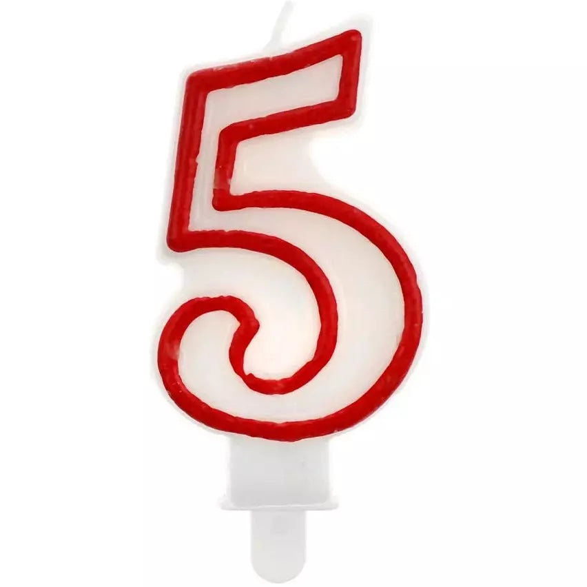 Lumanare aniversare, cifra 5, din parafina, inaltime 7 cm, rosu/albastru, 1 bucata pe blister.