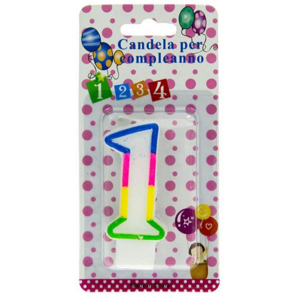 Lumanare aniversara, cifra 1, din parafina, inaltime 7 cm, multicolor, 1 bucata pe blister.
