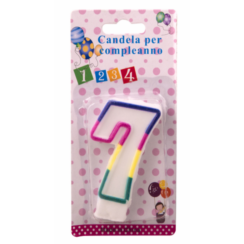 Lumanare aniversara, cifra 7, din parafina, inaltime 7 cm, multicolor, 1 bucata pe blister.