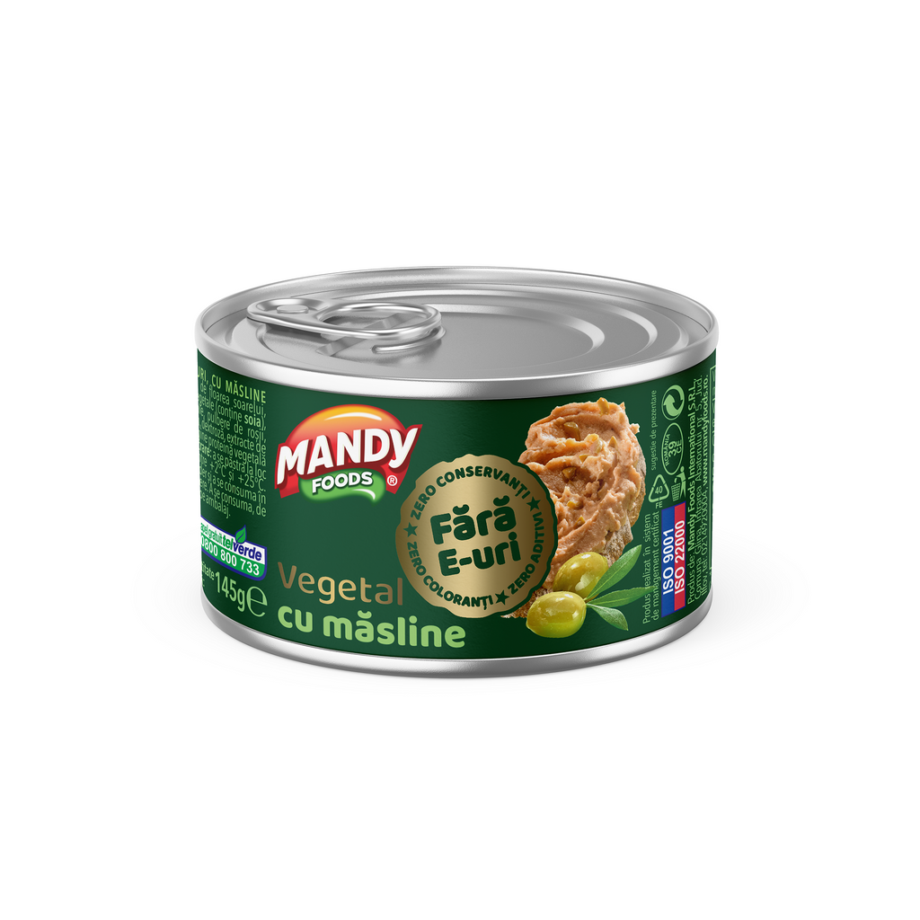 Mandy pasta vegetala cu masline fara E - uri, 145 GR