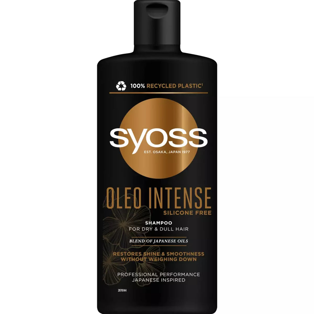 Sampon Syoss Oleo Intense, cu amestec de uleiuri japoneze pentru par tern si uscat, formula vegana, 440 ml.