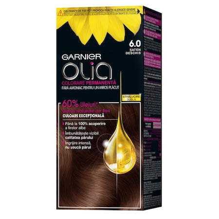 Vopsea de par permanenta fara amoniac Garnier Olia 6.0 Saten Deschis, 112 ml.