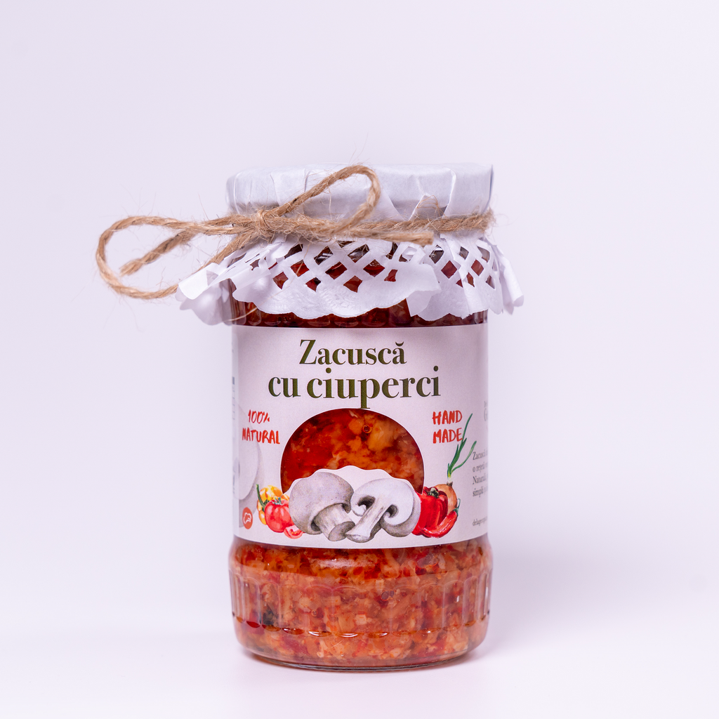 Ingrediente: ciuperci pleurotus, gogosari, ardei, ceapa, morcovi, rosii, ulei de floarea soarelui, sare, piper, foi dafin, zahar.