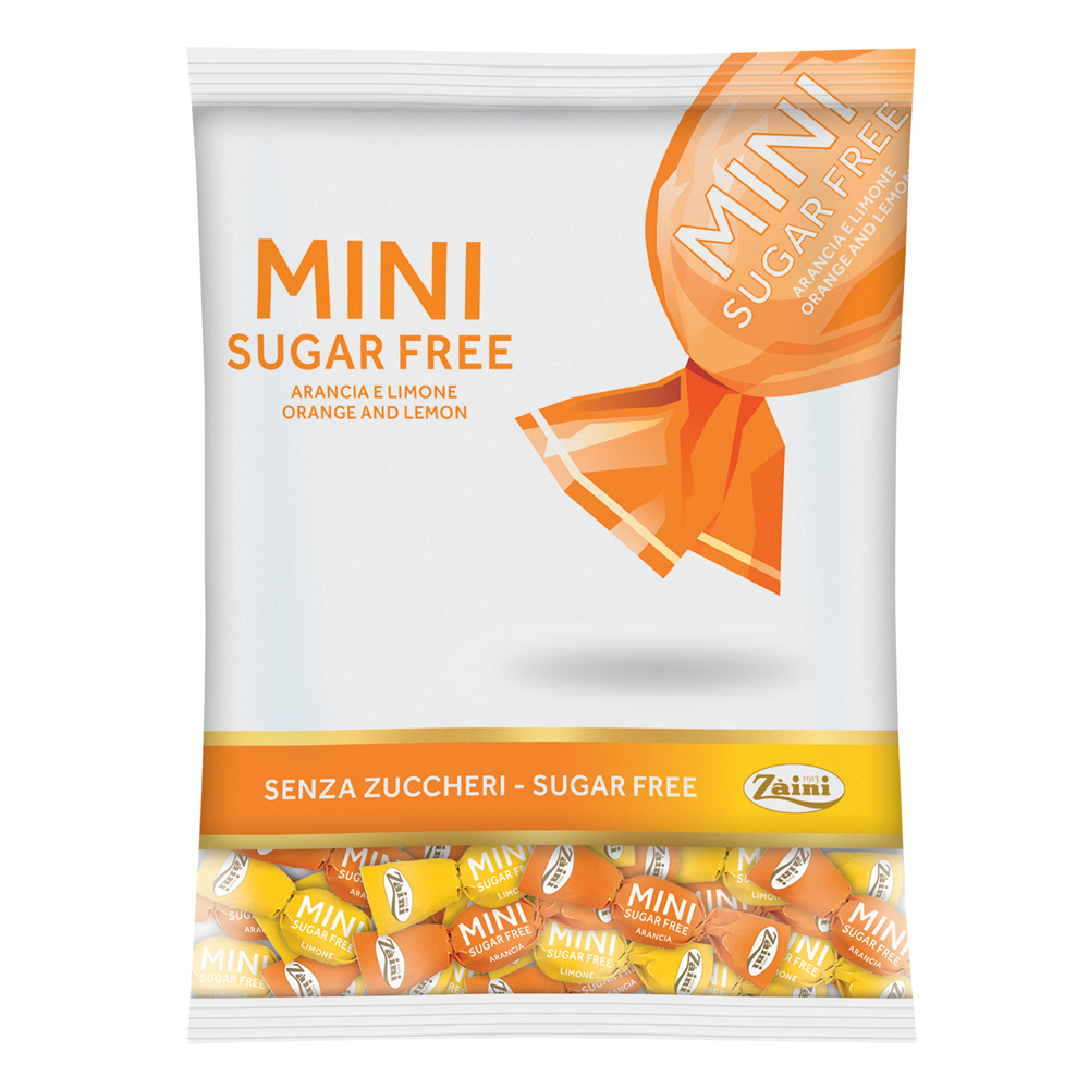 Zaini bomboane cu portocale si lamaie, fara zahar, 50g.